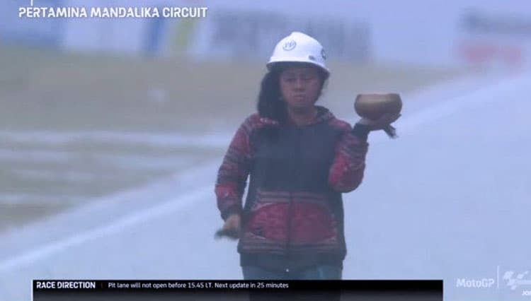TIMES Nunukan/Raden Rara Isti Wulandari, sang pawang hujan saat Sirkuit Mandalika, Lombok Tengah, NTB, Minggu (20/3/2022) (FOTO: t-2.tstatic.net)